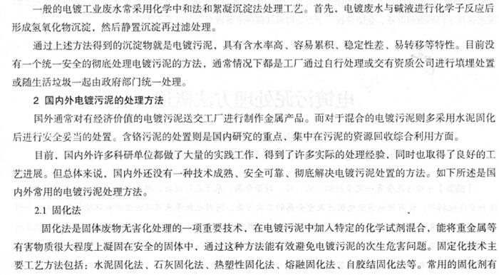 電鍍污泥處理方法概述